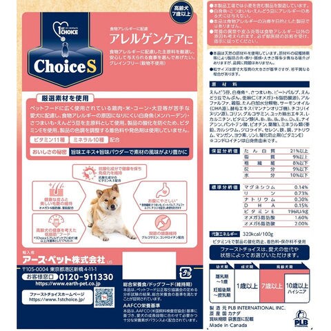| ドッグフード ファーストチョイス ChoiceS アレルゲンケアに 高齢犬7歳以上 600g | |
