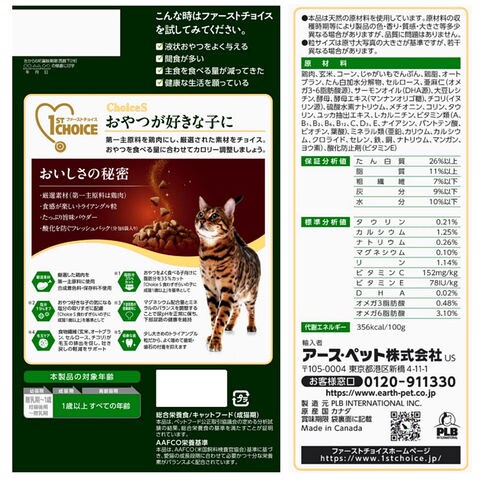 | キャットフード ファーストチョイス ChoiceS おやつが好きな子に 成猫1歳以上 1050g | |