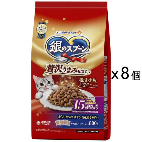 銀のスプーン 贅沢うまみ仕立て 腎臓の健康維持用 15歳が近づく頃から まぐろ・かつお・煮干し・白身魚・しらす入り 800g ×8 4520699647134 2250003038489 20240119 y24m01 Y.K. 猫 ねこ 猫用 ねこ用 キャット cat 猫フード キャットフード ペットフード フード 餌 エサ ごはん ドライフード ドライ 総合栄養食 ユニチャーム ユニ・チャーム unicharm シニア シニア猫 高齢 高齢猫 老猫 シニア用 シニア猫用 高齢用 高齢猫用 老猫用 主食 魚 フィッシュ カリカリ 国産 まぐろ カツオ 煮干し 白身魚 しらす 小分け 小分けパック 腎臓 腎臓ケア G-42ss