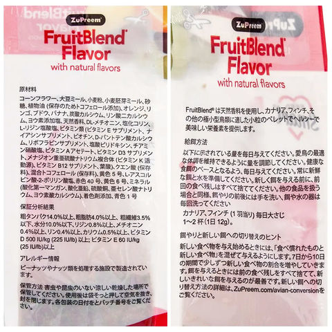 FruitBlendFlavor with natural flavors VerrySmallBirds 小動物 鳥 フード Zupreem ズプリーム フルーツブレンド フレーバー 0762177800202 _zupreem bird_jushimatsu _food 餌 えさ ゴハン ご飯 Importbird kak 20240314