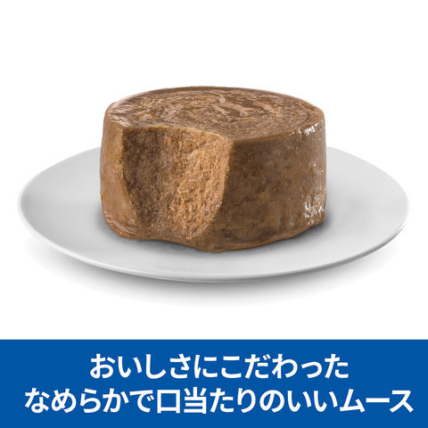 | 特長 | ●ヒルズが独自にブレンドした抗酸化成分で健康をサポートし、本来の免疫力を維持をサポートします。 ●おいしさにこだわった口当たりのいいムースで水分補給もサポートします。 ●高品質なたんぱく質を使用し、引き締まった筋肉を維持します。 ●カルシウムやグルコサミン、コンドロイチン硫酸を含み、健康な骨や関節をサポートします。 ●ビタミンD&Cを配合し、歯と歯ぐきの健康を維持します。 ●ビタミンEとオメガ3&6脂肪酸を含み、健康な皮膚と美しい被毛をサポートします。 |