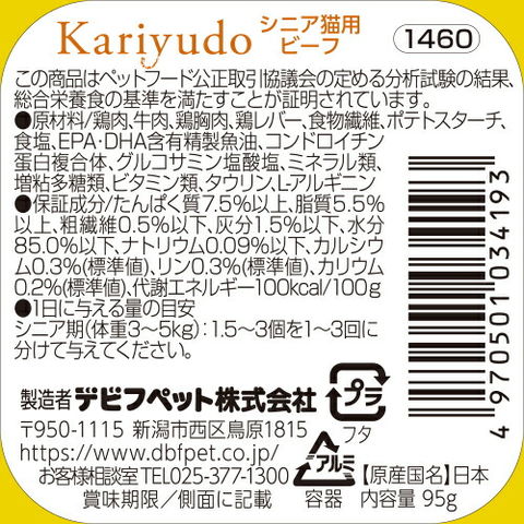 | デビフ Kariyudo カリユド シニア猫用 ビーフ 95g×24 | |