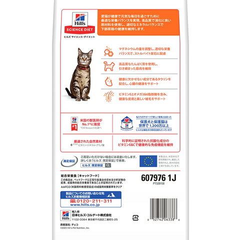 サイエンスダイエット アダルト チキン 成猫用 1.4kg×6 2250003073145 0052742063386 20240430 y24m04 Y.K. 猫 ねこ 猫用 ねこ用 キャット cat 猫フード キャットフード ペットフード フード 餌 エサ ごはん ドライフード ドライ 総合栄養食 成猫 免疫力 消化 筋肉 被毛 自然派成分 酸化防止 着色料 合成香料不使用 鶏 ミネラルバランス 下部尿路 マグネシウム ストルバイト尿石 たんぱく質 タウリン 心臓ケア wp2407hills sale2508hls