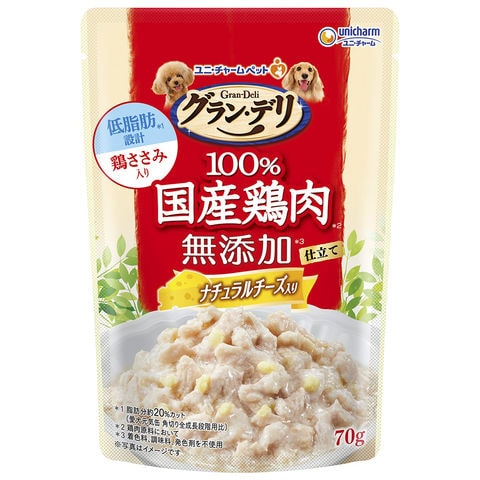 グラン・デリ 無添加仕立て 国産パウチ ナチュラルチーズ入り 70g×3 4520699627730 ユニチャーム 犬 いぬ 犬用フード 犬フード フード ウエットフード ウェット ウエット 一般食 無添加 低脂肪 パウチ レトルト チーズ 20240507 y24m05 Y.K.