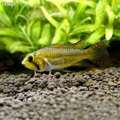 | 繁殖 | 流木やシェルターなどの陰に産卵するケーブスポウナーです。発情したメスは体色全体が黄色く色づき、オスメス共にテリトリーを主張するようになります。ペアが十分に発情していれば、シェルターなどに産卵をしメスが卵を孵化まで保護します。 産卵前は発情したオスに追いかけられるメスが、産卵後は卵を保護するメスに追いかけられるオスがボロボロにされることがあるので必要に応じて隔離をする必要があります。また混泳魚も追い回されることがあります。 卵が孵化し稚魚が自由遊泳後しばらくはメス親が稚魚を保護します。自由遊泳を開始した稚魚は孵化したてのブラインを食べることが出来、この頃には親魚は別の水槽に移した方が良いでしょう。 |