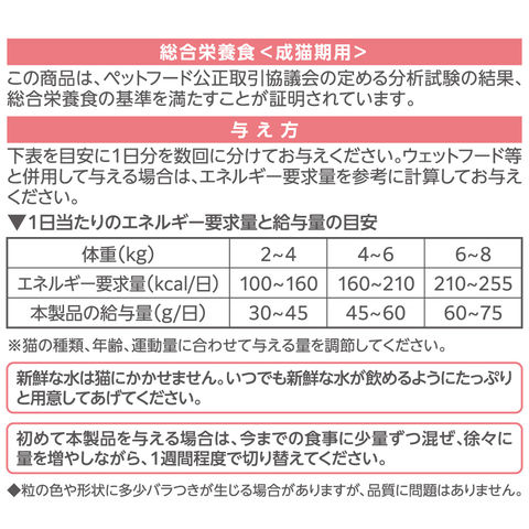 ご注意 ※本品は成猫用です。対象年齢以外の猫には与えないでください。