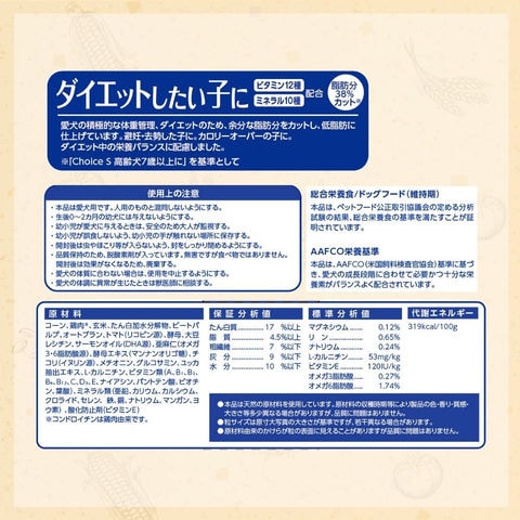 メーカー画像 ファーストチョイス ChoiceS ダイエットしたい子に 高齢犬7歳以上 700g×8袋入 4994527966702 20240531 y24m05 Y.K. 犬 いぬ 犬用 いぬ用 ドッグ dog 犬フード ドッグフード ペットフード フード 餌 エサ ごはん ドライフード ドライ 総合栄養食 シニア シニア犬 高齢 高齢犬 老犬 シニア用 シニア犬用 高齢用 高齢犬用 老犬用 ダイエット 体型維持 体重管理 体型 体重 避妊去勢 避妊 去勢 低脂肪 低カロリー チキン 鶏 とり肉 鶏肉 鳥肉 opa2_choku melma2409syouryodog bnr202411wanears 25raf_d_eth 25raf_d0
