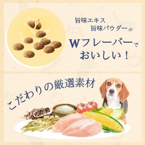 | ご注意 | ※本品は犬用です。対象動物には与えないでください。 ※本品は天然の原材料を使用しています。原材料の収穫時期等により製品の色・香り・質感・大きさ等多少異なる場合がありますが、品質に問題はありません。 ※原材料由来のかけらが粒の表面に見えることがありますが品質に問題はありません。 ※粒サイズは原寸大写真の大きさが基準ですが、若干異なる場合があります。 |
