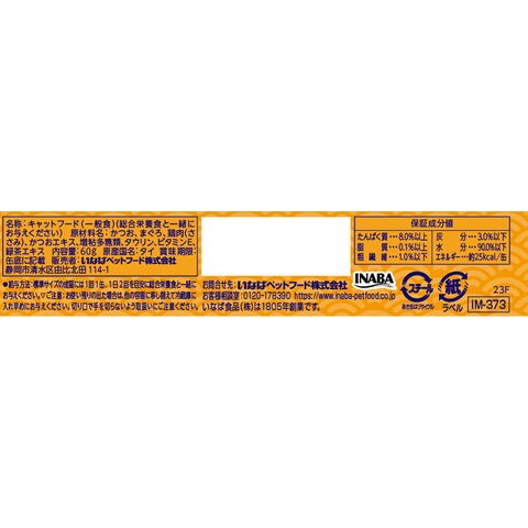 | お問い合わせについて | 商品の不明点につきましては、下記にお問い合わせください。 いなばペットフード株式会社 TEL:0120-178390 |