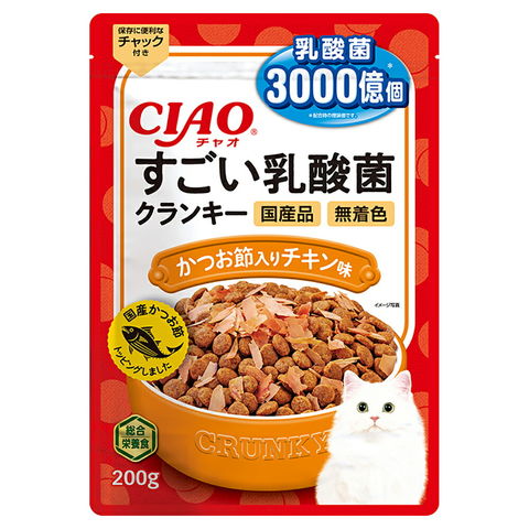 CIAO すごい乳酸菌クランキー かつお節入り チキン味 200g 2250003094485 キャットフード ドライフード いなば チャオ 乳酸菌 総合栄養食 オールステージ 全成長段階 20240726 y24m07 ktym かつお 鰹 かつおぶし かつお節 鰹節 チキン 鶏 とり キャット フード ドライ 栄養食 ねこ 猫 ネコ用 猫用 CAT 愛猫