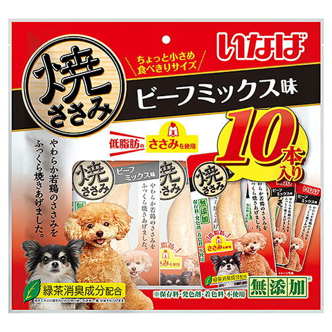 メーカー画像 いなば 焼ささみ ビーフミックス味 10本入り 2250003095499 犬用 犬用品 犬 いぬ ドッグ ドッグフード 犬フード フード エサ 餌 ジャーキー おやつ 間食 ささみ チキン 鶏肉 低脂肪 無添加 保存料不使用 発色剤不使用 着色料不使用 やわらか 小さめ 食べきりサイズ 20240806 y24m08 ktym とり 鶏 ビーフ ミックス 肉 いぬ用 イヌ用 イヌ用品 いぬ用品 イヌ いぬフード イヌフード DOG 愛犬