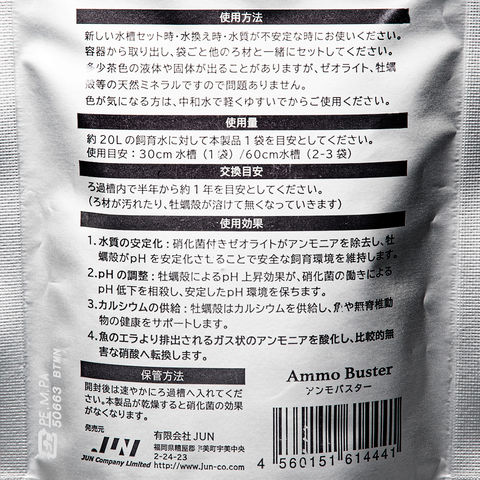 JUN アンモバスター 淡水用 100g 淡水 アクアリウム アクア用品 アクアリウム用品 淡水魚 ろ材 吸着 バクテリア ゼオライト アンモニア 分解 PH ph 中和 ph調整 水質 水質調整 4560151614441 牡蠣殻 観賞魚 メダカ 金魚 グッピー 熱帯魚 アベニ―パッファー アルカリ性 20250210 y25m02 kak y25m02newaqu