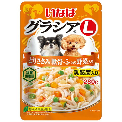 いなば グラシアL とりささみ 軟骨・5つの野菜入り 280g 犬 いぬ イヌ 愛犬 ドッグ ドック dog 老犬 シニア シニア犬 高齢犬 成犬 成犬期 小型犬 中型犬 大型犬 室内犬 犬用 全犬種用 パウチ やわらかい 総合栄養食 成犬用総合栄養食 ドックフード ドッグフード ご飯 エサ 犬のごはん ゼリー ウエット ウェット ウェットフード 野菜入り 鶏 鶏ささみ ササミ 軟骨 成犬用 オリゴ糖 乳酸菌 健康維持 たっぷり 緑茶消臭成分 アダルト ごはん ご飯 2250003096168 20240808 y24m08 ktym とり 野菜 DOG 栄養食 ウェット フード