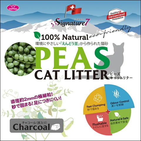 猫砂 ファンタジーワールド ピーズ キャットリター 7L チャコール 固まる トイレに流せる 0753692081757 2250003098094 20240813 y24m08 Y.K. ペット用 猫用品 猫用 猫 ねこ ネコ キャット トイレ用品 極細粒 炭入り 消臭 足が汚れにくい 砂ぼこり立ちにくい 天然素材 えんどう豆 ソフト シグネチャー Signature7