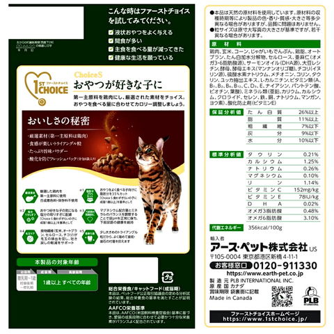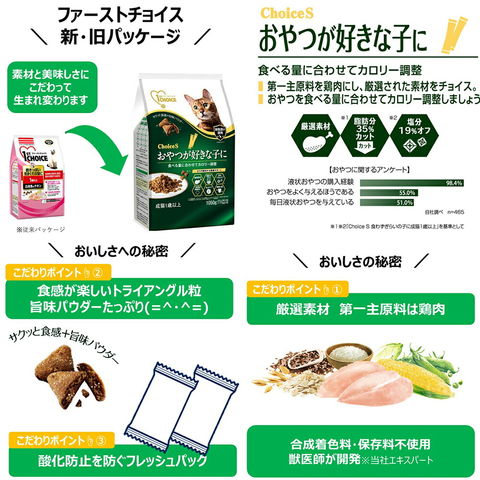 | キャットフード ファーストチョイス ChoiceS おやつが好きな子に 成猫1歳以上 350g×6 | |