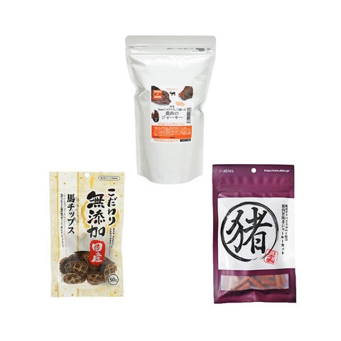 | カロリー | ・鹿肉のジャーキー:- ・馬チップス:359kcal/100g ・猪肉 ジャーキーカット:265kcal/100g |