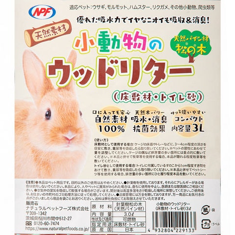 _animal 4932804229133 ナチュラルペットフーズ NPF 小動物のウッドリター 3L 床敷材 床材 国産 小動物 鳥 小動物用品 リター 木製 ハリネズミ 敷材 爬虫類 カメ 亀 リクガメ 陸亀 モルモット うさぎ 兎 ハムスター 20240912 kak y24m09 opa2_choku 25raf_m_npf 25raf_m0