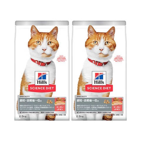 キャットフード サイエンスダイエット 避妊・去勢猫用 避妊・去勢後~6歳 サーモン+チキン 2.5kg ×2 2250003107888 0052742071404 20240925 y24m09 Y.K. キャット フード サイエンス ダイエット サイエンス・ダイエット sciencediet カリカリ エサ 餌 猫 ねこ 総合栄養食 避妊 去勢 去勢後 6歳 サーモン チキン 鮭 鶏 ねこ ネコ 猫 CAT 体重管理 体重 管理 栄養バランス 栄養 ミネラル 下部尿路 筋肉の維持 筋肉 尿石 心臓の健康 心臓 健康維持 スペシャリティ 2個 複数売り おまとめ 大容量 セット pt2024hls line2503hillscat line2503hillsr line2505hillsspset line2506sdspcp line2508sdcoupon sale2508hls line2509sdrkpt line2509sdyhcp line2510pointrk line2510pointyh line2510bonussd line2512sdbonus line2601sdprice line2601sdbonus