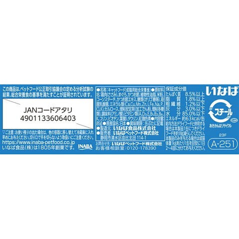 | お問い合わせについて | 商品の不明点につきましては、下記にお問い合わせください。 いなばペットフード株式会社 TEL:0120-178390 |