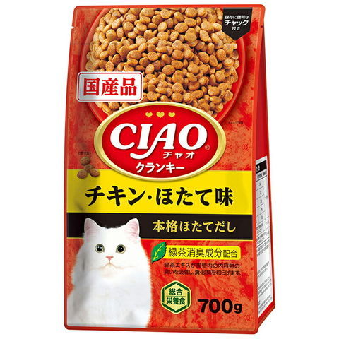 メーカー画像 CIAO チャオ クランキー チキン・ほたて味 本格ほたてだし 700g ×12 2250003112622 ペット用 猫用品 猫用 猫 ねこ ネコ キャット キャットフード 猫フード フード えさ エサ 餌 ごはん ドライ 粒 カリカリ 総合栄養食 成猫 低脂肪 腎臓の健康維持 毛玉 皮膚・被毛 配慮 国産 20241013 y24m10 ktym ちゃお チキン 鶏 鶏肉 ほたて ホタテ 帆立 出汁 ペット CAT 栄養食 腎臓 健康維持 健康 維持 皮膚 被毛 日本