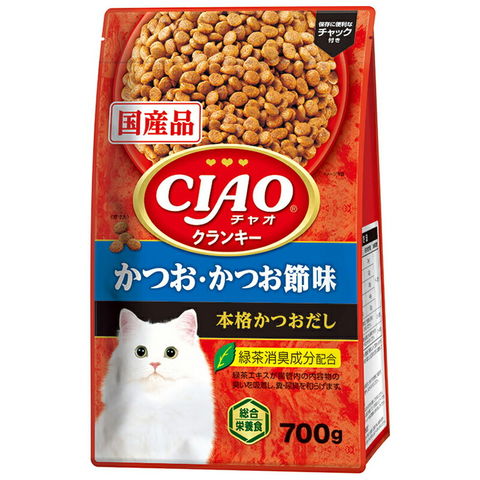 メーカー画像 CIAO チャオ クランキー かつお・かつお節味 本格かつおだし 700g ×12 2250003112646 ペット用 猫用品 猫用 猫 ねこ ネコ キャット キャットフード 猫フード フード えさ エサ 餌 ごはん ドライ 粒 カリカリ 総合栄養食 成猫 低脂肪 腎臓の健康維持 毛玉 皮膚・被毛 配慮 国産 20241013 y24m10 ktym ちゃお 鰹 かつお カツオ カツオ節 鰹節 かつお節 出汁 ペット 栄養食 腎臓 健康維持 健康 維持 皮膚 被毛 毛 日本