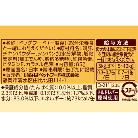 メーカー画像 2250003112660 いなば 若鶏レバー レバー 85g ×24 犬 いぬ イヌ DOG イヌ用 いぬ用 犬用 愛犬 愛犬用 犬フード イヌフード いぬフード ドッグフード ご飯 ウェット缶 ウェットフード ウェット 一般食 間食 おやつ ご褒美 栄養 国産 日本産 ゼリータイプ ゼリー レバー 若鶏 若鶏レバー 20241013 y24m10 ktym ドッグ ウエット ウエットフード 日本 鶏 鶏肉 bnr2511wan2in bnr2511wanall