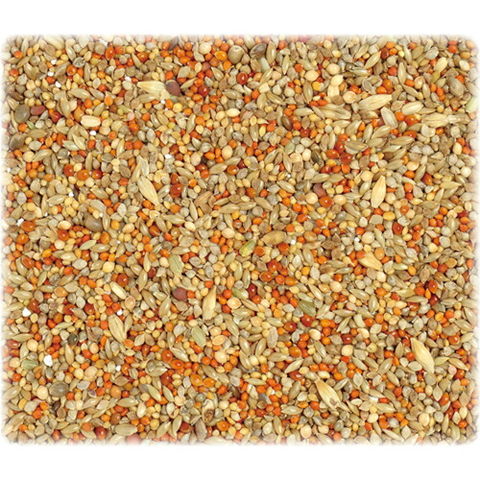 | 原材料 | カナリーシード、玄あわ、ナタネ、赤あわ、赤ひえ、ニガシード、アマニシード ※カスタムラックスは、季節により配合を変えてあります。 |