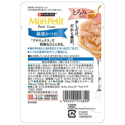 | モンプチ プチリュクス とろみ仕立て 厳選かつお 35g×12 | |