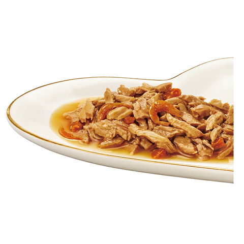 | 特長 | ●~ほろっとコクうま煮込み~お肉やお魚、厳選素材をじっくり調理し、独自のシュレッドカット製法でほぐしました。 ●深いコクとうまみ豊かなソース、魅力的なトッピングを添えた究極の一品です。 ●総合栄養食、合成着色料、香料無添加です。 |