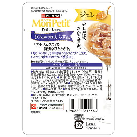 | モンプチ プチリュクス ジュレ まぐろとかつおのしらす添え 35g×48 | |