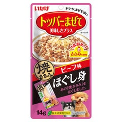 | 原材料 | 鶏肉(ささみ)、チキンエキス、チキンパウダー、酵母エキス、増粘安定剤(増粘多糖類、加工でん粉)、ビタミンE、緑茶エキス、カラメル色素、パプリカ色素 |
