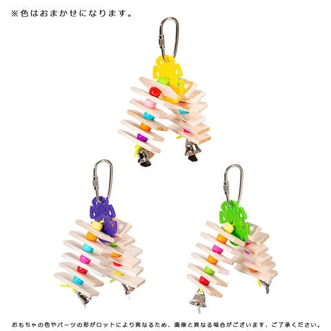 ※本品は鳥用のおもちゃです。目的以外の用途では使用しないでください。 ※おもちゃの色やパーツの形がロットにより異なるため、画像と異なる場合がございます、ご了承ください。 ※必ず飼い主さんの目が届く場所で遊ばせ、噛み砕き、飲み込み等にご注意ください。 |