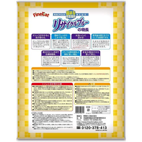 | 特長 | ●オシッコで濡れた部分がブルーに変わる、固まって流せる紙製トイレ砂です。 ●ペレット状で散らかりにくく、しっかり固めてニオイをとります。 ●環境に配慮し、リサイクルした再生パルプを主原料にしています。 |