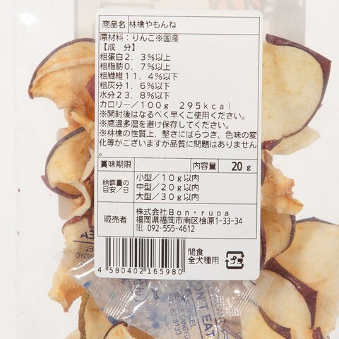 ボンルパ Bon-rupa 林檎やもんね 20g 4580402165980 20250121 y25m01 Kbsk 犬 犬フード ドッグフード ドッグ いぬ 犬おやつ おやつ 間食 ご褒美 ナチュラル 全犬種 日本産 日本製 国産 Bon 無添加 自然 素材そのまま りんご 林檎 食物繊維 ビタミンC スライス チップス 薄切り 乾燥 melma2508apples