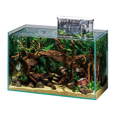 | ご注意 | ※本品はアクアリウム用品です。目的以外の用途では使用しないでください。 ※本品は屋内観賞魚飼育専用です。他の目的には使用しないでください。 ※本品はガラス製品です。無理な力を加えたり、キズをつけたりすると割れの原因となります。取り扱いには十分ご注意ください。 ※キズがつくため、本製品内で底砂を洗ったり、金属タワシや研磨剤のついたスポンジを使用しないでください。 |