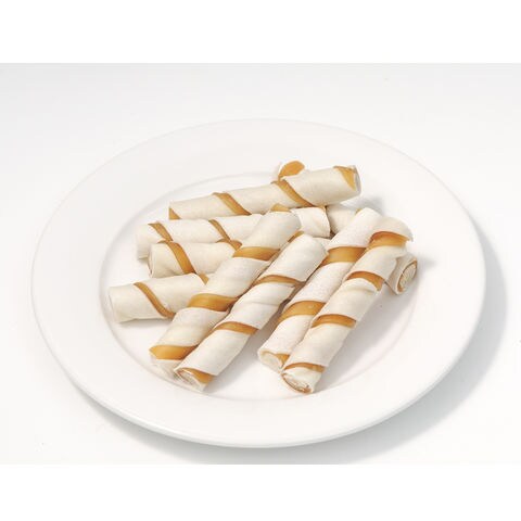 | 原材料 | 牛皮、鶏ササミ、ゼラチン、コーンスターチ、大豆たんぱく質、米粉、オリゴ糖、パセリシードオイル、増粘安定剤(グリセリン)、ミネラル類(ヘキサメタリン酸ナトリウム)、ビタミン類(ビタミンE) |