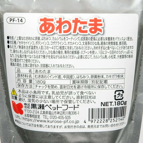 | ご注意 | ※本品は小鳥用フード、鳥用品です。目的以外の用途には使用しないでください。 |