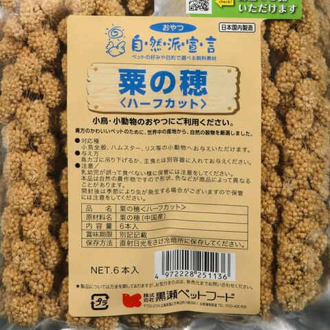 黒瀬ペットフード 手のりひな鳥のごはん 120g×1 黒瀬ペットフード 自然派宣言 あわたま 180g×1 黒瀬ペットフード 自然派 粟の穂 ハーフカット 6本入り×1 NPF エクセル スプーンセット×1 |