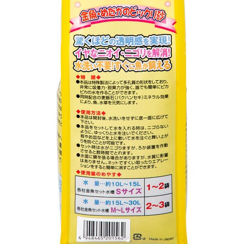 ※本品は水質を弱酸性に保ちます。海水や汽水魚、アフリカンシクリッド等の硬水を好む魚の飼育には適しません。また本品をかき回したり、掘り起こしてしまうような大型魚や錦鯉の飼育にも適していません。