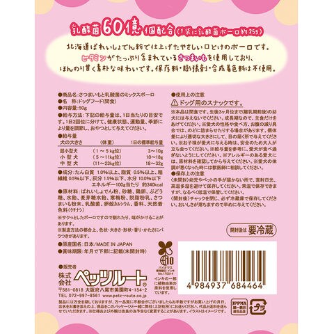 | ペッツルート さつまいもと乳酸菌のミックスボーロ 50g | |