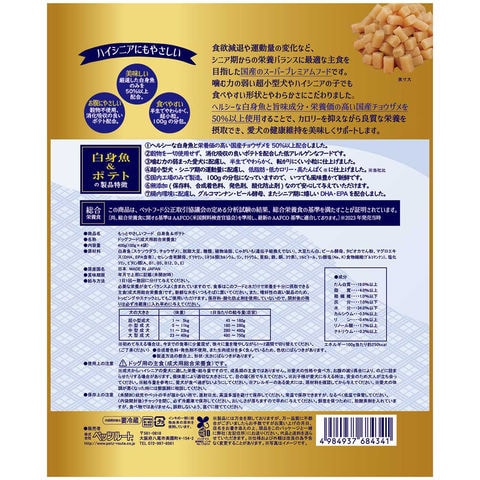 ヘルシーで旨味成分が豊富な白身魚をたっぷり配合したシニア犬向け国産スーパープレミアムフード!