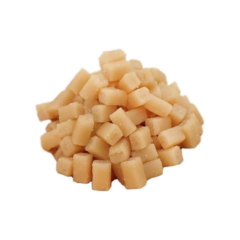 | 原材料 | 白身魚(スケソウダラ、チョウザメ)、脱脂大豆、糖類、植物油脂、じゃがいも(遺伝子組換えでない)、大豆たん白、ビール酵母、タピオカでん粉、マグロエキス(DHA、EPA含有)、セレン含有酵母、グリセリン、ミネラル類(カルシウム、リン、ナトリウム、亜鉛、鉄、銅、ヨウ素)、ソルビトール、リン酸塩(Na、K)、食物繊維(グルコマンナン)、塩化コリン、ビタミン類(A、B1、B5、B12、D、E) |
