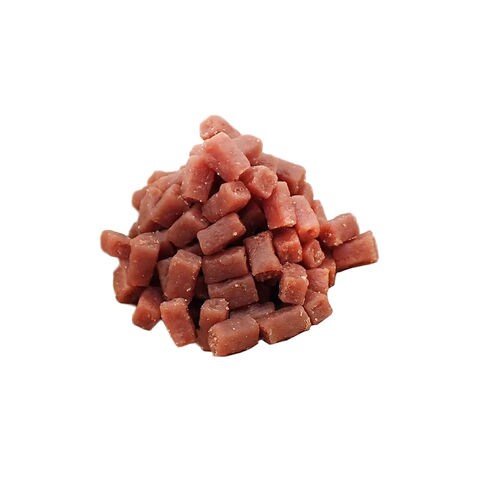 | 原材料 | ラム肉(仔羊)、脱脂大豆、糖類、じゃがいも(遺伝子組換えでない)、植物油脂、大豆たん白、タピオカでん粉、ビール酵母、酵母エキス、マグロエキス(DHA、EPA含有)、セレン含有酵母、グリセリン、ミネラル類(カルシウム、リン、ナトリウム、亜鉛、鉄、銅、ヨウ素)、ソルビトール、天然着色料(クチナシ色素、カラメル)、リン酸塩(Na、K)、塩化コリン、食物繊維(グルコマンナン)、ビタミン類(A、B1、B5、B12、D、E) |