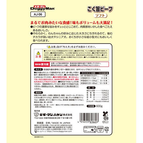 メーカー画像 ドギーマン こく旨ビーフ ソフト 600g(300g×2袋) 4976555828603 犬フード 犬 いぬ イヌ DOG dog イヌ用 いぬ用 犬用 おやつ ご褒美 ごほうび 鶏肉 チキン 牛肉 ビーフ 食べごたえ 満腹感 ちぎれる ドッグフード スナック ジャーキー 間食 幼犬 子犬 パピー シニア犬 高齢犬 老犬 超小型犬 トリーツ やわらか こく旨 国産 日本産 20250318 y25m03 ngtk opa2_choku dgycp2512all