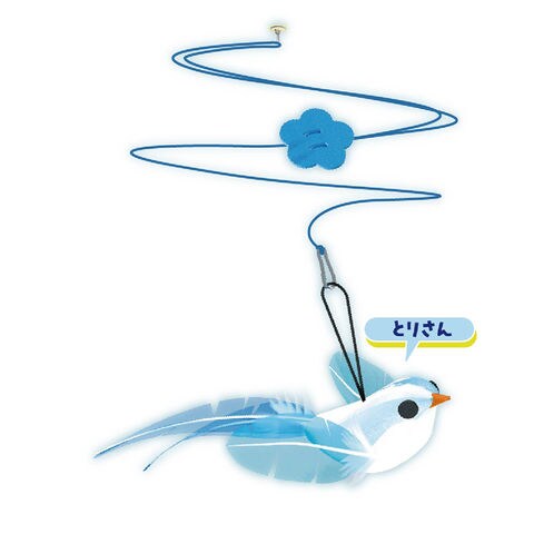 | 特長 | ●青いとりさんがお部屋を飛び回る!長さ調節が可能なゴム紐で吊るす猫じゃらしです。 ●捕まえても捕まえてもぶっ飛びながら逃げていくので、必死に追いかけて遊ぶ猫ちゃんの可愛い姿が見られます。 ●糊残りしない、専用の粘着パッドでお部屋の壁や窓、天井に取り付け可能です。 ※じゃれ猫お好みじゃらしシリーズ交換用モチーフがご使用頂けます。 |