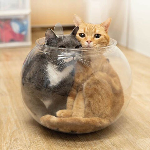 透明で可愛い姿が見えちゃう金魚鉢の猫ベッド!