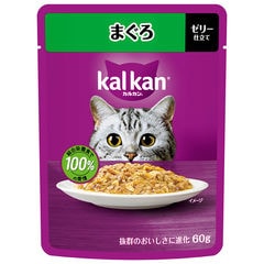 | 特長 | ●1歳以上の猫に必要な栄養素がバランスよく含まれた総合栄養食です。 ●抜群のおいしさに進化!厳選された食材をカルカン特製だしで煮込み、ジューシーなゼリー仕立てにしました。 |