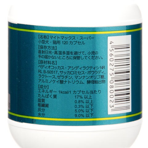 メーカー画像 共立製薬 マイトマックス・スーパー 小型犬・猫用 120カプセル 4560275080023 犬 イヌ いぬ 犬用 いぬ用 dog DOG 犬フード 猫 ネコ ねこ 猫用 ねこ用 cat CAT 猫フード 健康補助食品 サプリメント 小型犬 小型 ペディオコッカス菌 生きたまま腸まで 生きたまま 腸 おなかの健康 お腹の健康 おなか お腹 カプセル 20250116 y25m01 ngtk