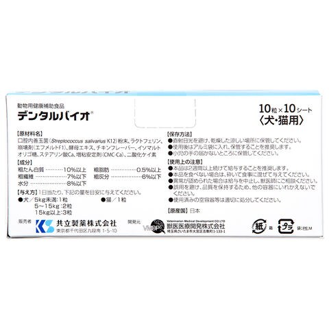 | 共立製薬 デンタルバイオ 犬猫用 100粒(10粒×10シート) | |