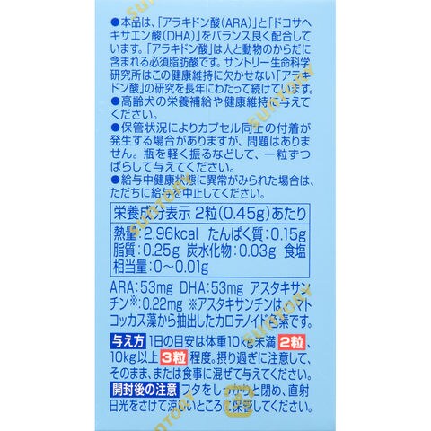ARA:53mg、DHA:53mg、アスタキサンチン*:0.22mg